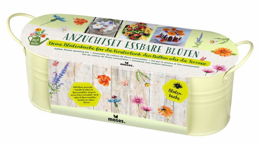 Essbare Blüten in Zinkwanne hält eine bunte Saatmischung aus essbaren Blumen bereit. Mit dabei sind unter anderem Ringelblume, Kamille, Kornblume und viele mehr. Das Pflanzset kommt in einer hübschen Zinkwanne, die Erde und die Saatmischung beinhaltet. Ob als Topping für den Salat oder einen Kuchen, die Saatmischung kann vielseitig eingesetzt werden zum Garnieren und Verzieren.