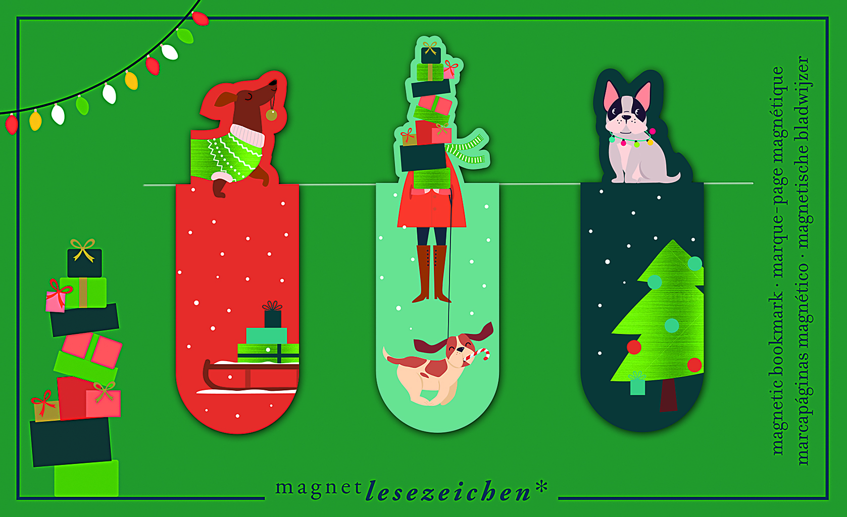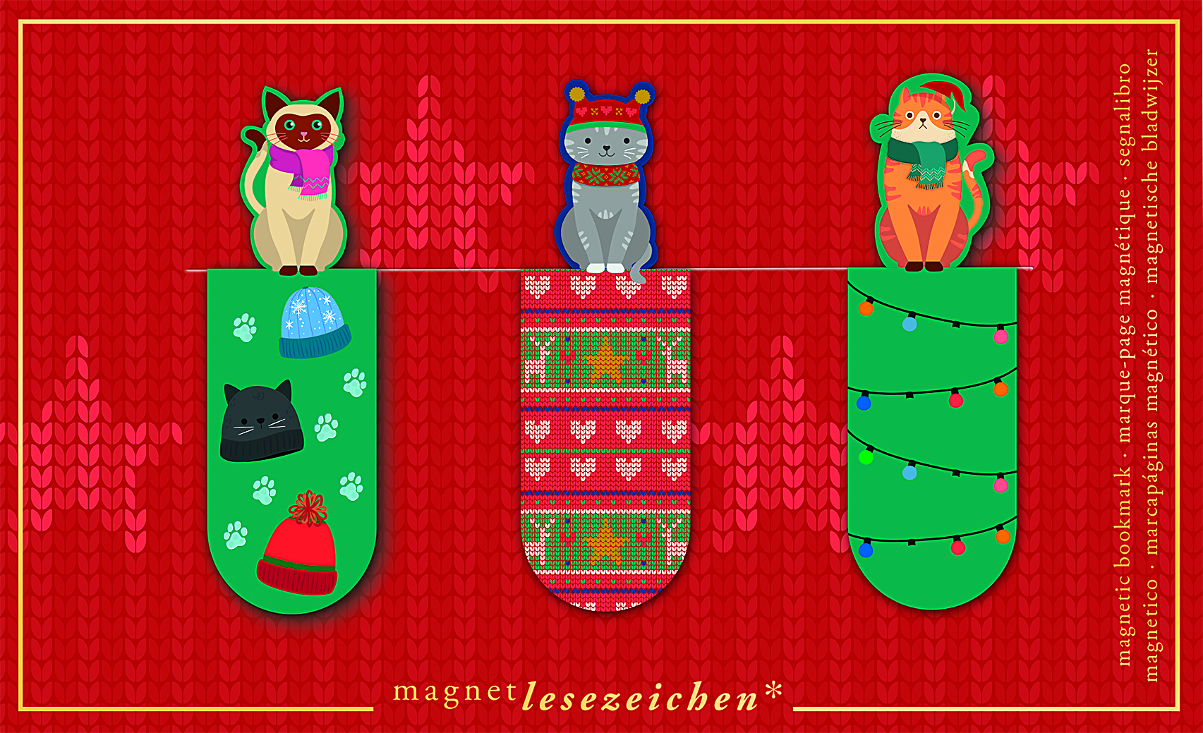 Mit den Magnetlesezeichen „Winterhunde“ und „Winterkatzen“ wird jede Seite zum kleinen Wintermärchen. Jedes Set enthält drei liebevoll gestaltete Designs.