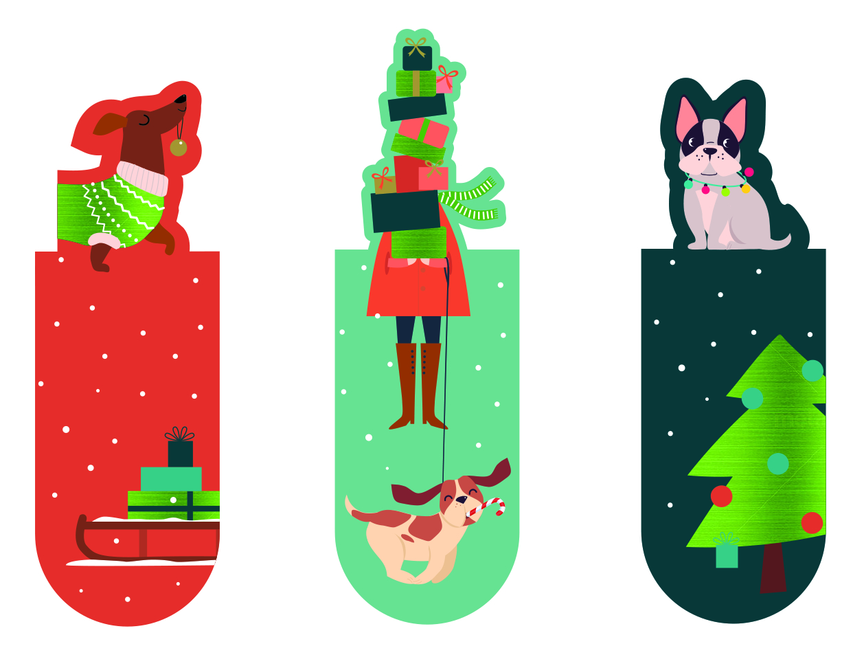 Und das Beste: Die winterlichen Hunde und Katzen schauen oben aus Ihrem Buch heraus – so finden Sie jede wichtige Stelle auf Anhieb.